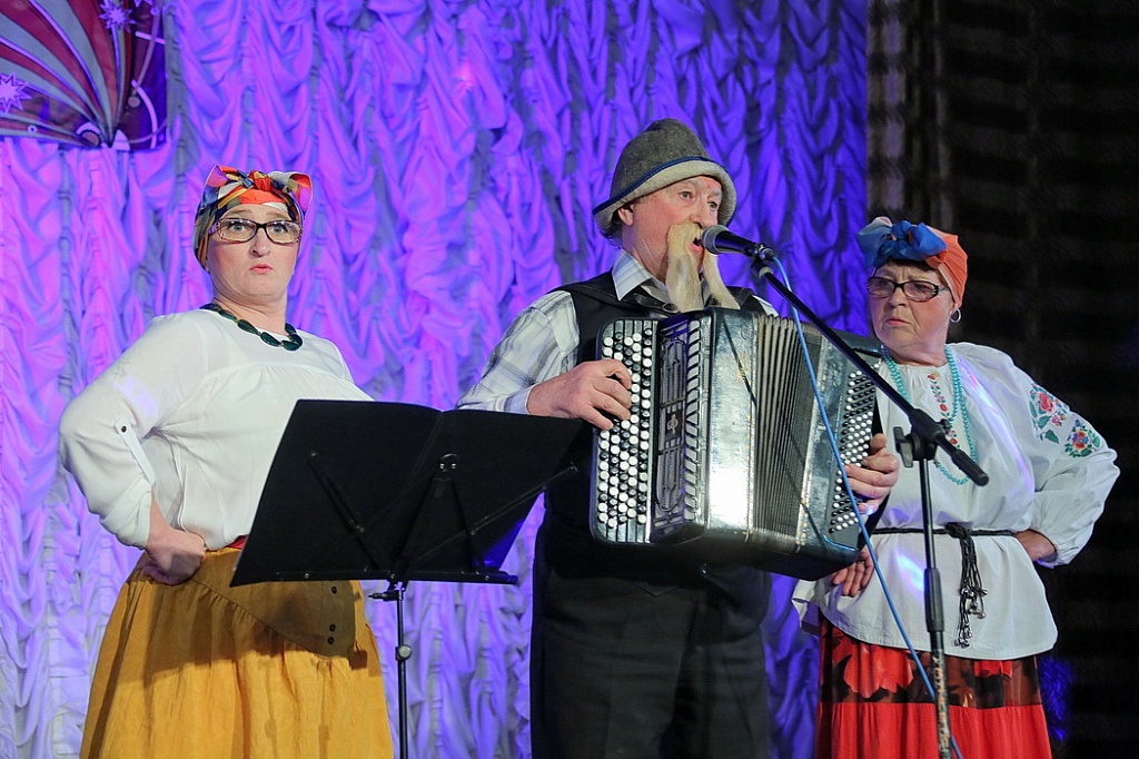 На сцене Солецкого центра культуры и досуга готовились показать свое мастерство по пяти номинациям: трио - дуэт, сольное пение, гармонь-частушка, художественное слово и хореография пенсионеры из ветеранских организаций Батецкого, Волотовского, Новгородского, Парфинского, Поддорского, Солецкого, Старорусского, Холмского, Чудовского, Шимского районов и Великого Новгорода.