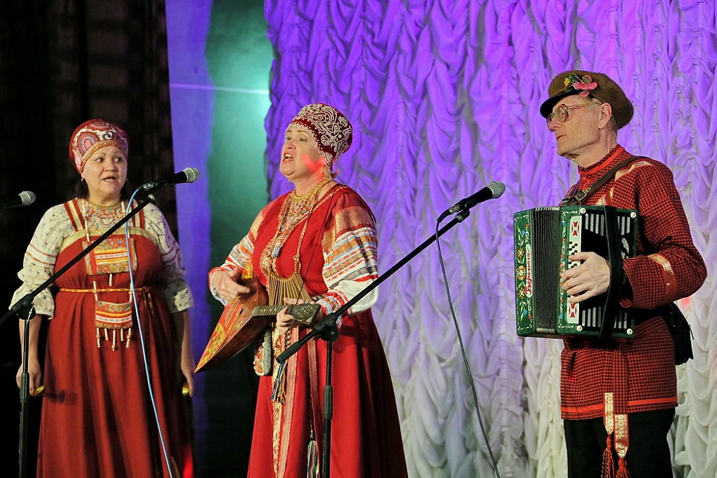Первое место Старорусский район Е.Иванов, Е.Тимина, И. Румянцева - гармонь, балалайка и задорные "Страдания".