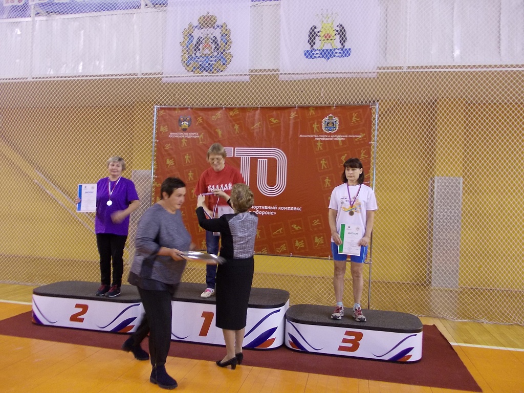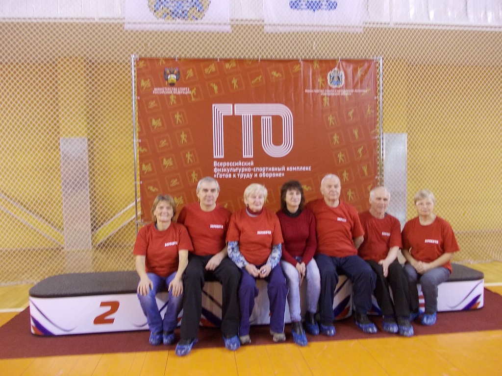 Состав команды: 6 участников (1 мужчина и 1 женщина - IX ступени (55-60 лет); 1 мужчина и 1 женщина - Х ступени (60-69 лет); 1 мужчина и 1 женщина - XI ступени (70 лет и старше). Виды испытаний: наклон вперед, плавание, сгибание и разгибание рук в упоре лежа на полу, поднимание туловища из положения лежа на спине, стрельба из "электронного оружия". Места распределились: