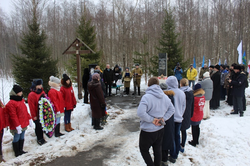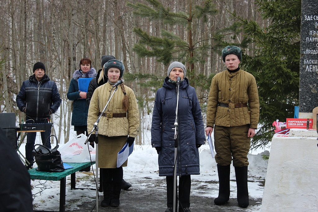 14 февраля 2019 г. в месте перехода линии фронта продовольственным партизанским обозом в блокадный Ленинград состоялся митинг с участием делегации Псковской области, ветеранов и молодежи Поддорского и Холмского районов Новгородской области.