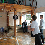 Впервые участвовавшая в наших состязаниях Галина Ратникова (Кировское с/п) в дартсе заняла первое место среди женщин с результатом 129 очков, уступив только 6 очков Михаилу Михалеву (Калининское с/п), занявшему 1 место среди всех участников. Калининцы заняли 1 место в командном зачете. Все участники очень радовались новейшим кругам и дротикам, и, не стесняясь, благодарили искренне и душевно областной совет ветеранов за выделенный Мошенскому району спортивный инвентарь.