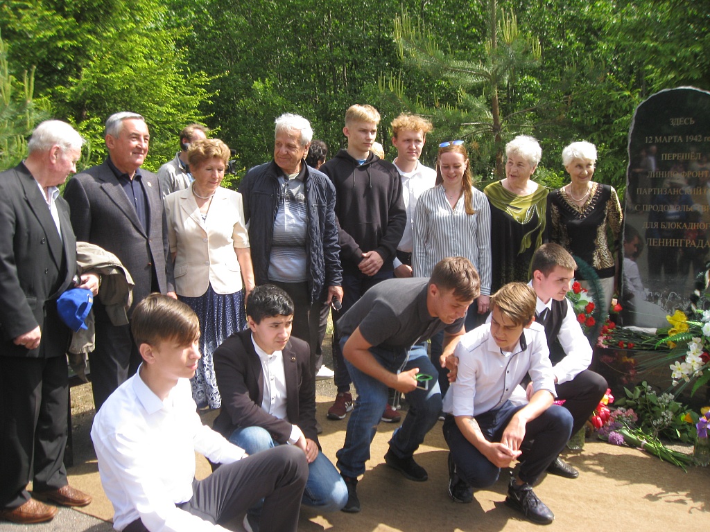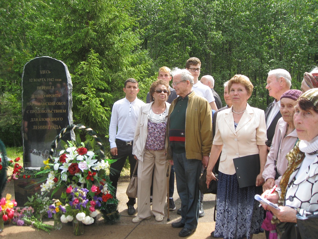 – "Здесь 12 марта 1942 года перешел линию фронта партизанский обоз с продовольствием для блокадного Ленинграда".