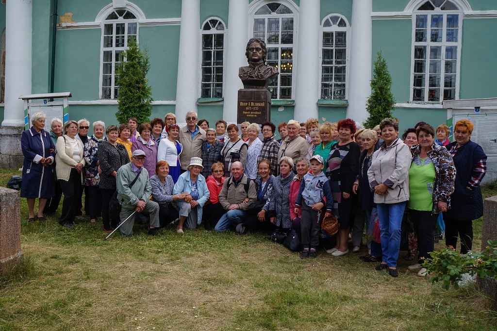 Коллеги из г. Бокситогорска Ленинградской области (с которыми мы дружим вот уже 4 года) вновь пригласили на Петровскую ярмарку в с. Сомино, которая состоится 12 июля. Немного посовещались и решили – едем! Администрация района бесплатно предоставила нам микроавтобус на 16 человек Когда я спрашивала своих попутчиков не пугает ли их большое расстояние и плохие дороги, они мне ответили «Мы же пенсионеры чего нам боятся?». Когда приехали в с.Сомино нас окружили таким вниманием и душевным теплом, что мы позабыли о всех дорожных неудобствах. Встречал нас председатель совета ветеранов Бокситогорска – Балбеков Олег Павлович, который, несмотря на большую занятость, не упускал из виду своих гостей и подсказывал нам, что лучше посмотреть и где можно поучаствовать. А посмотреть было на что! Это и крестный ход, и театрализованное представление с прибытием Петра 1, и грандиозный концерт с участием коллективов из разных районов и областей, народный артист Владимир Девятов с душевными русскими песнями.