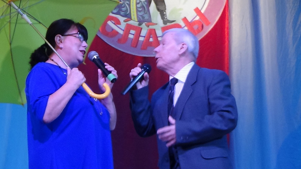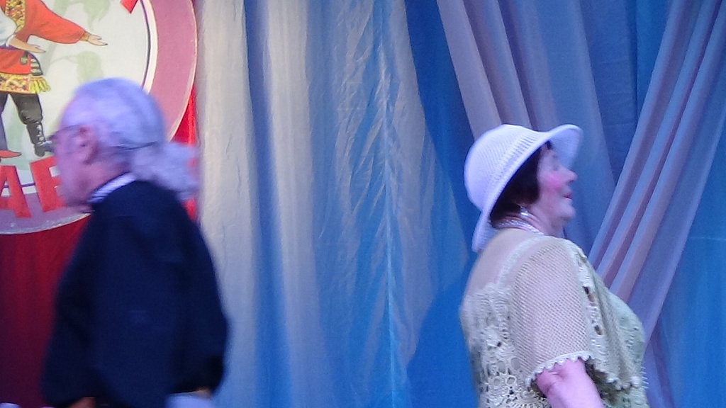 Видя активность и энергию, которую излучали артисты на сцене, говорить об их возрасте даже как-то неловко. И все же хочется особо отметить тех, кто перешагнул 80-летний юбилей и не перестает удивлять своим прекрасным даром, щедро делится им с людьми. Георгий Яковлевич Пресман из Чудовского района - солист вокального ансамбля "Наши песни", более 30 лет отработал на стекольном заводе, труд легким не назовешь! Ему уже - 82! С первыми звуками украинской песни "Дывлюсь я на небо" в его исполнении возникло чувство голоса, идущего из глубины души. Красивый, полнозвучный он поднимался ввысь и уверенно набирал силу, тосковал и торжествовал. Его хотелось бесконечно слушать.