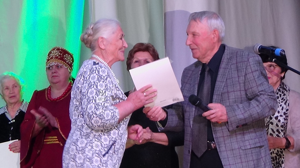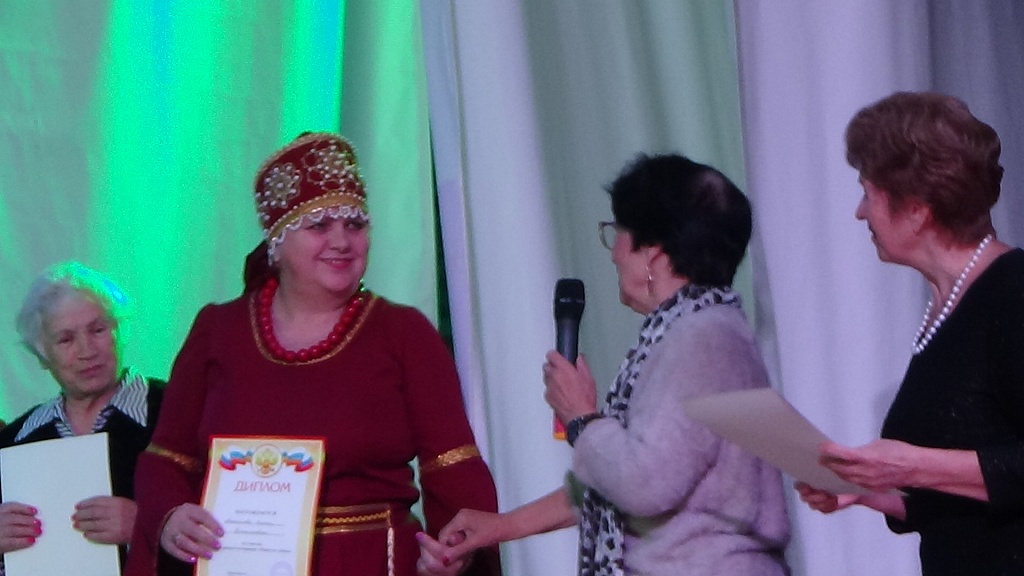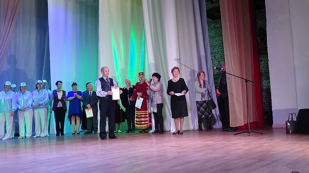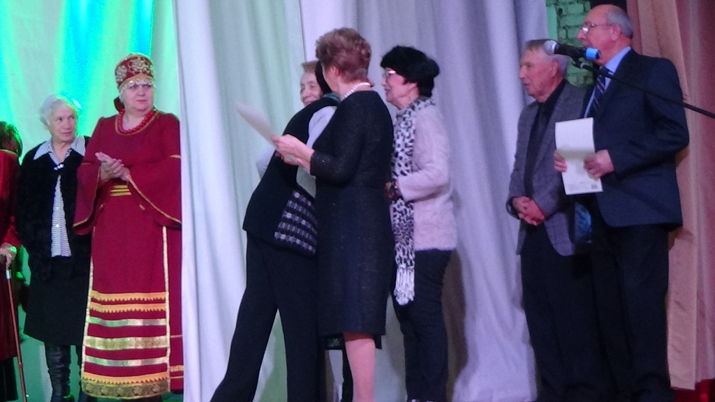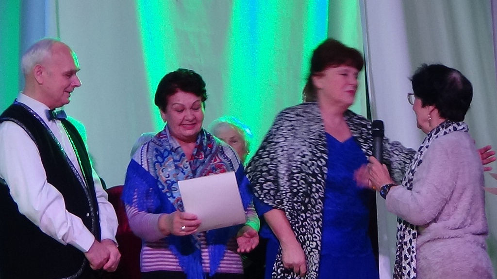 Фестиваль завершился подведением итогов и награждением. Все участники выстроились полукругом на сцене. Поверьте, это было красиво! Сюда же поднялись Н.И. Пилявская, руководитель областного совета ветеранов и члены жюри во главе с неизменным председателем Т.А. Иванько, лауреатом международного и всероссийского конкурсов исполнителей русского романса, членом президиума областного совета ветеранов.