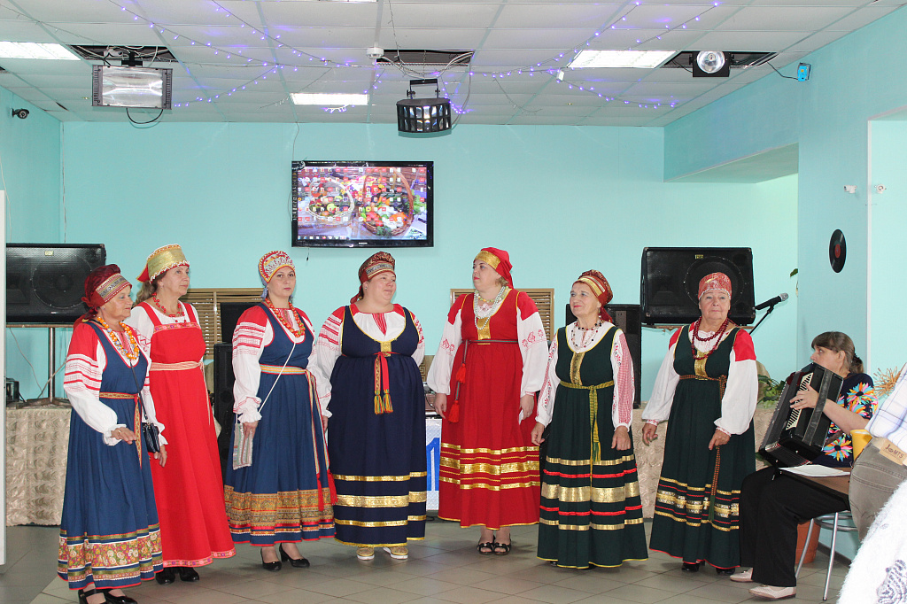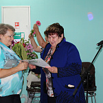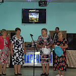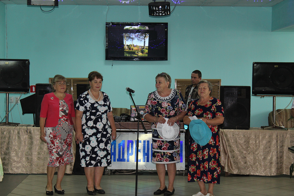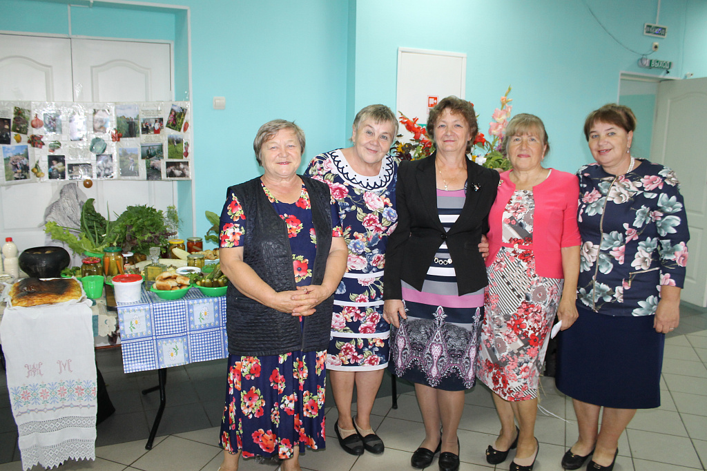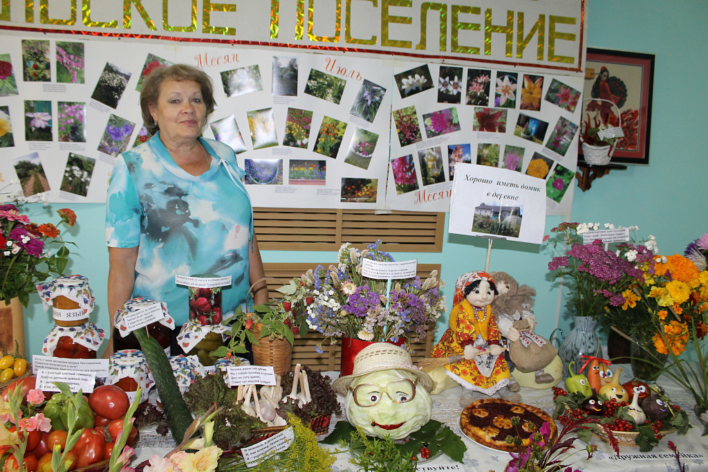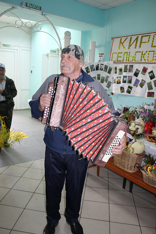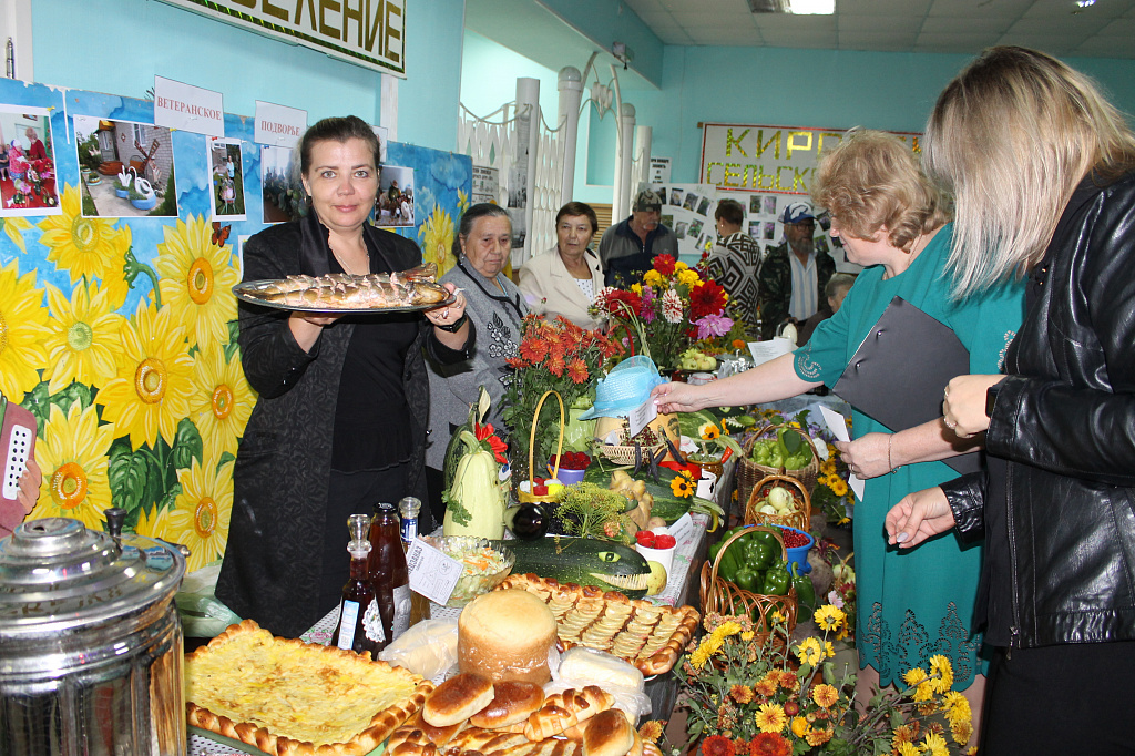 Пять столов занимала команда Калининского сельского поселения, о чём извещал огромный плакат на стене и мелькавшее среди них яркое платье Главы калининцев Воропаевой Л.В. В отсутствие председателя первичной ветеранской организации Любовь Алексеевна проявила себя трудолюбивым и рачительным хозяином, о чём говорят результаты конкурса "Лучший овощевод-садовод" - Фёдорова Т.Т., "Лучший животновод" –Егорова Н.В., то есть 40% от числа одиночных номинаций. А какими пирогами угощали калининцы всех участников ветеранского праздника!