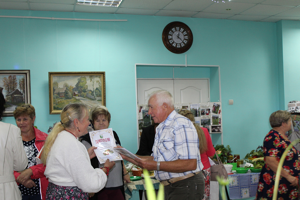 Конечно. члены жюри долго совещались, определяя первое и последующие места: ведь у всех участников была какая-то своя изюминка. Возьмём хотя бы выставку (я не оговорился, именно "выставку") Никифоровой Н.А. из д.Устрека. На высоком стенде расположены фотографии большого формата, где показано её хозяйство от весенней вспашки до уборки урожая. А чего стоит фото-рекомендация по борьбе с кротами!? Человек наполовину залез головой вниз, болтая от напряжения высоко поднятыми ногами. Здесь и лягушата из перца, и мангал из тыквы, кабриолет из кабачков и многое юмористическое другое.