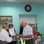 Члены жюри уступили просьбе команды первичной ветеранской организации Ореховского сельского поселения в составе Ермаковой Е.И. (председатель организации), Бойцовой О.А., Бойцовой Т.И., Колиповой А.В. и Сахаровой В.С., которая под музыку своей гармошки исполнила гимны д.Ореховно и друзьям-садоводам, где звучали призывно-бодрящие слова : "Не расстанусь с огородом, буду вечно молодым!". С их огромного букета из более чем 55 цветов, обозначавшего возраст участниц, и самодеятельного ансамбля "55+ " и начало работу компетентное жюри. Здесь выставлено было всё, начиная с разноцветной картошки, корнишонов и огромных китайских огурцов до наливок и настоек из фруктов своих садов. Хочется отметить, что участие ореховцев было под большим вопросом: у них нет собственного транспорта, способного преодолеть это направление в 20 км, называемого дорогой на Ореховно. Поэтому было решено частью состава районного президиума (Гребенцова Л.Г., Сергеева И.А., Алексеев Г.В.) добраться до д.Ореховно и на месте посмотреть готовность ореховчан к предстоящему районному смотру-конкурсу, чтобы потом аргументированно выйти с просьбой о транспорте на главу района. Эти 20 км наша команда преодолела за 1,5 часа. Нам показали многие дома в д.Ореховно, и мы были в восторге от всего увиденного: дома, выстроившиеся вдоль добротных асфальтированных улиц, похожих на девушек-красавиц 50-70 годов прошлого столетия на празднике "Спас яблочный" в д.Лянино, окружены цветниками, фруктовыми и ягодными садами, полугектаровыми овощными огородами. Татьяна Владимировна, выслушав результат нашей поездки, без колебаний выделила автомобиль "Газель" и Елена Ивановна со своими подругами не подвела нас, став "Лучшей первичной ветеранской организацией Мошенского района".