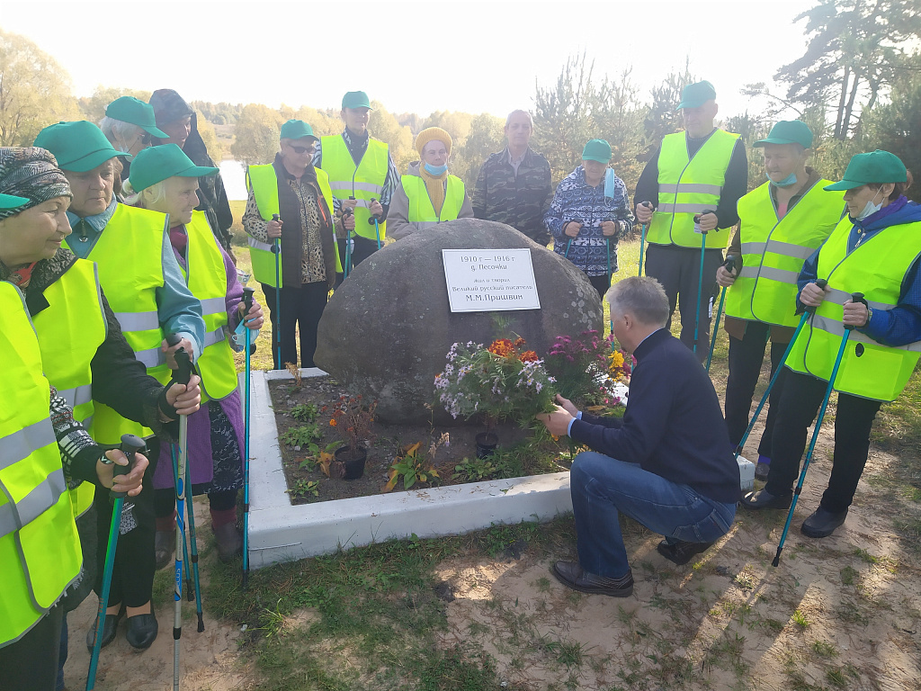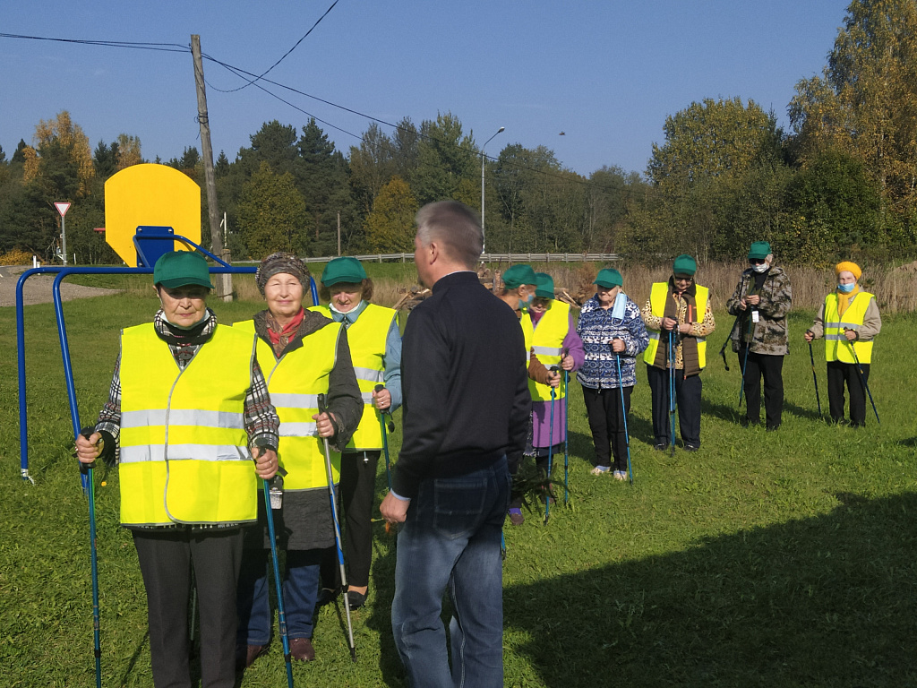 Мастер-класс для деревенских пенсионеров, которые до недавнего времени для прогулок использовали лыжные палки, начался с раздачи современных финских палок, сигнальных жилетов и бейсболок. Более опытные участники семинара помогали своим деревенским коллегам в экипировке для ходьбы. В сопровождении инструкторов группа выдвинулась по специально разработанной туристической тропе для возложения цветов к памятному знаку, посвящённому русскому писателю М.М. Пришвину в д. Песочки.