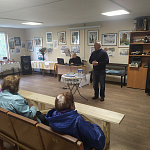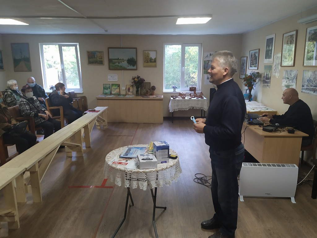 В Центре по работе с населением в д. Песочки собрались более 20 человек. Мероприятие началось с презентации проекта: демонстрации спортивного инвентаря, специальных измерительных приборов и буклетов. Все эти вещи очень необходимы для серьёзных групповых занятий по скандинавской ходьбе.