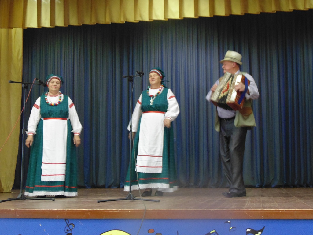 Начался праздник выступлением боровичских исполнителей. Гармонист Леонид Николаевич Никонов из деревни Волок и многолетний председатель местной первичной ветеранской организации, в которой на учёте 243 человека, с задором исполнил ряд наигрышей и частушек. Играть на гармони и других музыкальных инструментах он научился в 6 лет у старшего брата. Потом овладевал мастерством на деревенских праздниках, в школе, на службе в армии, районных конкурсах. Кстати, Л.Н. Никонов был победителем пятого межрайонного конкурса гармонистов и частушечников (участвовали также исполнители из Демянска и Хвойной), прошедшего недавно в Боровичах в рамках Спасской ярмарки. Забегая вперёд скажем, что трио исполнителей – Л.Н. Никонов, Г.Н. Саламонов и Н.Г. Тюляков заняли первое место на областном конкурсе в номинации «За исполнение песенного фольклора». Песня «Коробушка» в их исполнении под аккомпанемент гармони, баяна и мандолины не оставила никого из зрителей равнодушным и получила заслуженную оценку строгого компетентного жюри.