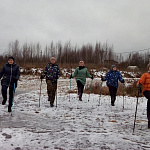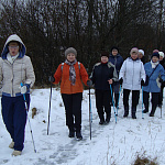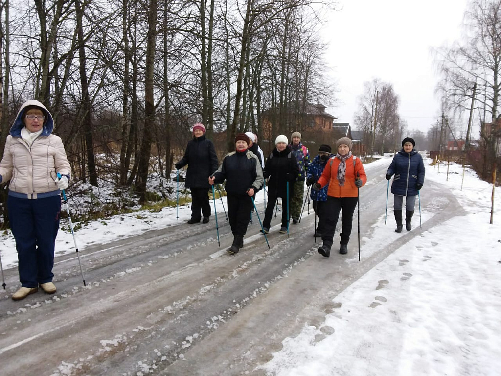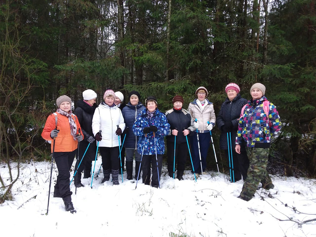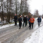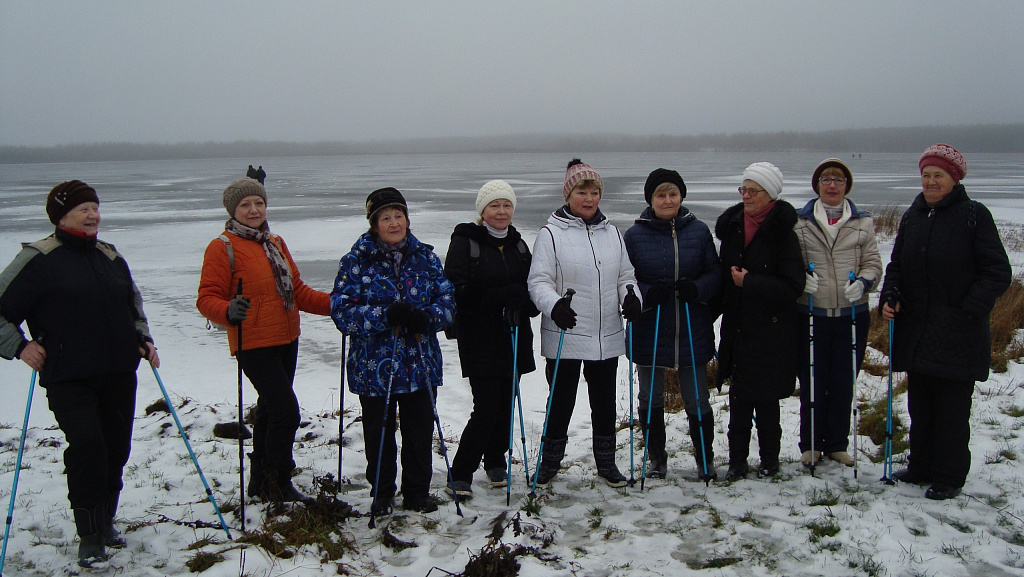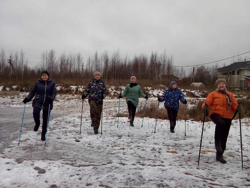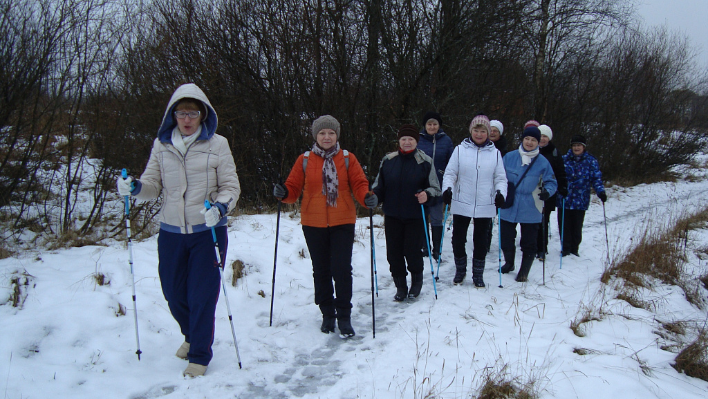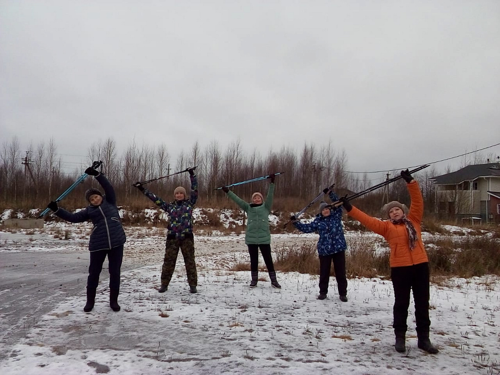 Группа "Здоровье "осваивает маршрут до Окуловского озера протяжённостью 3,6 км в одну сторону. Перед прогулкой делаем разминку, занимаемся 3 раза в неделю.