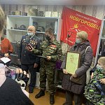 Приподнятая и волнительная атмосфера царила 19 декабря 2020 года как в Подгощском Доме культуры, так и в музее «Боевой славы», созданном поисковиками отряда «Новгородец». Ровно в 13 часов к нему подъехали четыре легковые автомашины из которых вышли около 20 человек, в возрасте, что называется «от мала до велика». Вместе с Кирой Васильевной и Василием Васильевичем прибыли теперь уже и их дети, внуки и правнуки. Подъехала с мужем Александром и нашедшая медаль Марина Павловна. Награда к этому времени была приведена в надлежащий вид поисковиками – братьями Севостьяновыми, даже была упакована в красную коробочку, как и полагается при награждении. Имелся и наградной лист на медаль в рамке под стеклом из архива Минобороны. С соблюдением всех мер предосторожности в условиях коронавируса, семейная реликвия вместе с наградным листом была вручена старшей дочери Кире Васильевне, но она пожелала, чтобы они остались у брата Василия, как сына участника войны. На память все сфотографировались, было много цветов и разумеется, слёз радости. Гостям раздали около десятка газет «Шимские вести» от 18 декабря 2020 года, в которой была первая большая статья об этом радостном событии, предваряющая возвращение награды. Вторая же была в новогоднем номере от 30 декабря с констатацией факта передачи медали родным героя. Гости с большим вниманием осмотрели экспозиции музея, а затем вместе с нами посетили сельское кладбище в с. Подгощи, где возложили цветы на воинском захоронении. Им показали и заложенную недавно аллею Славы из 75 липок в честь 75-летия Великой Победы. Вскоре каждая из них станет носить имя конкретного участника войны из Подгощского сельского поселения, а одна из них увековечит память солдата Василия Костина. Напоследок пили чай в Доме культуры с вкуснейшими пирогами, которые напекла мать командира и членов поискового отряда «Новгородец» Татьяна Васильевна Севостьянова. Было много хороших и добрых слов от родных нашего героя за радушный приём и хорошую организацию встречи в адрес Главы поселения Людмилы Николаевой, семьи Севостьяновых, поисковой экспедиции «Долина» и, конечно же, Марины Масленниковой, благодаря которой дорогая потомкам отцовская награда была возвращена.