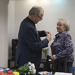 В заключение Ю. М. Левков вручил знак «45 лет новгородской городской ветеранской организации» Н. А. Андриановой и О. Г. Ожгихину и выразил надежду на наше активное участие в работе городской и областной организаций с ветеранами и молодежью.