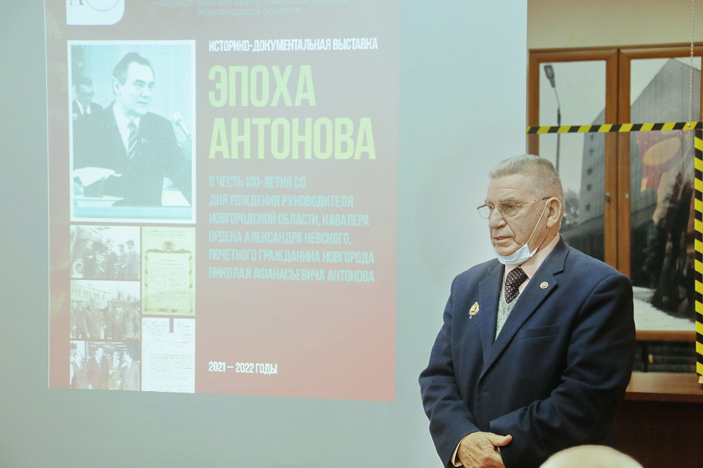 1 декабря 2021 года в читальном зале Государственного архива новейшей истории Новгородской области прошла презентация историко-документальной выставки «Эпоха Антонова», посвященная 100-летию со дня рождения участника Великой отечественной войны, кавалера ордена Александра Невского, Почетного гражданина Новгорода, первого секретаря Новгородского обкома КПСС с 1972 по 1986 годы Антонова Николая Афанасьевича.