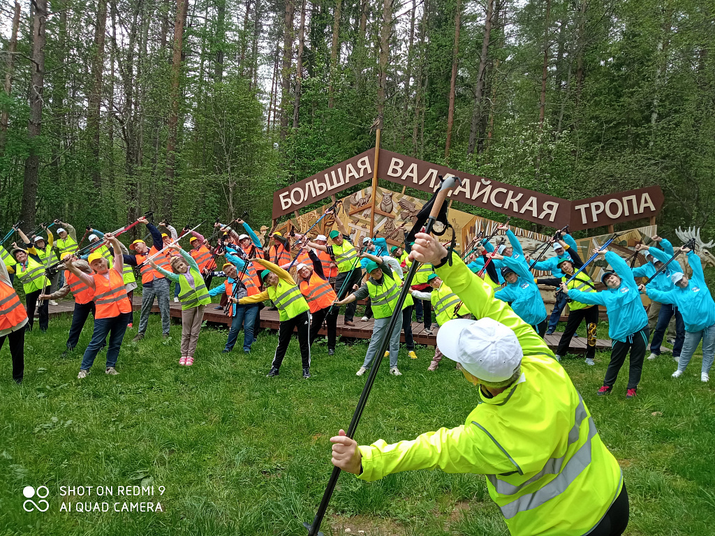 2 ИЮНЯ ОБЛАСТНОЙ СОВЕТ ВЕТЕРАНОВ ОРГАНИЗОВАЛ ПРОВЕДЕНИЕ ПЕРВОГО ЭТАПА ФЕСТИВАЛЯ «МАРШРУТЫ АКТИВНОГО ДОЛГОЛЕТИЯ». На четырехкилометровый маршрут Большой Валдайской тропы после разминки, проведенной сертифицированным инструктором Т.А. Паниной, вышли ветераны-любители скандинавской ходьбы из 10 районных ветеранских организаций. Маршрут проходил по живописным местам от деревни Короцко до стоянки у озера Находно. Одной из опытных участниц на маршруте была Александра Васильевна Евстратова из Волота. После небольшого отдыха, танцев и песен под гитару для участников был организован показ фильма о Валдайском национальном парке, а также презентация проекта «Валдай - город партизанской славы».