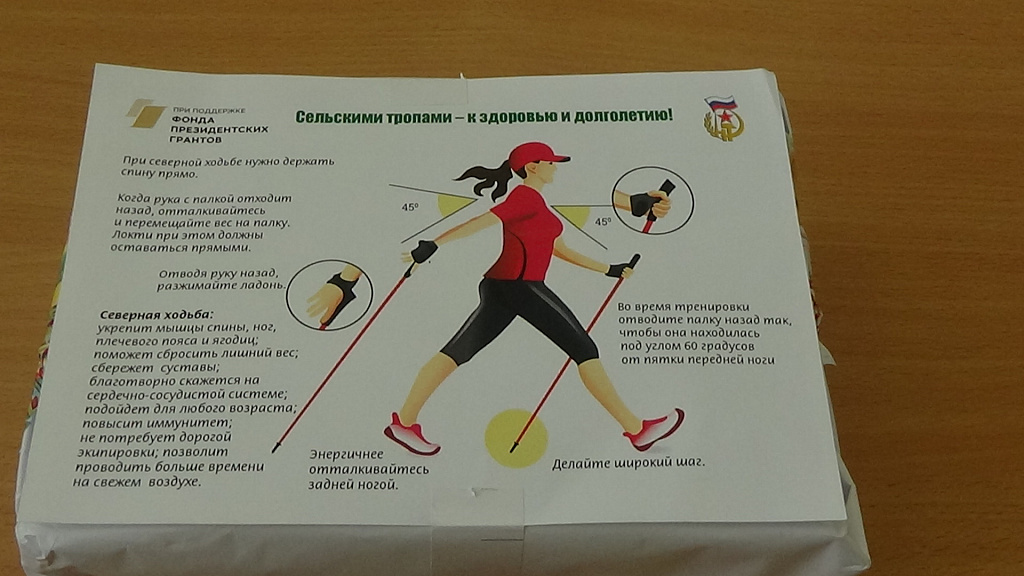 Областной совет ветеранов приступил к реализации первого этапа проекта «Сельскими тропами – к здоровью и долголетию!», поддержанного Фондом президентских грантов. В то время как в сельских населенных пунктах создаются новые группы любителей северной ходьбы, для них уже приобретены необходимые комплекты спортивного инвентаря и экипировки (палки, футболки, бейсболки, жилеты со светоотражающими элементами), медицинские аптечки и средства медицинского контроля. Заказаны и получены из типографии инструкции по технике ходьбы и буклеты с комплексом упражнений для разминки.