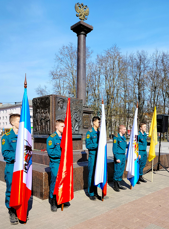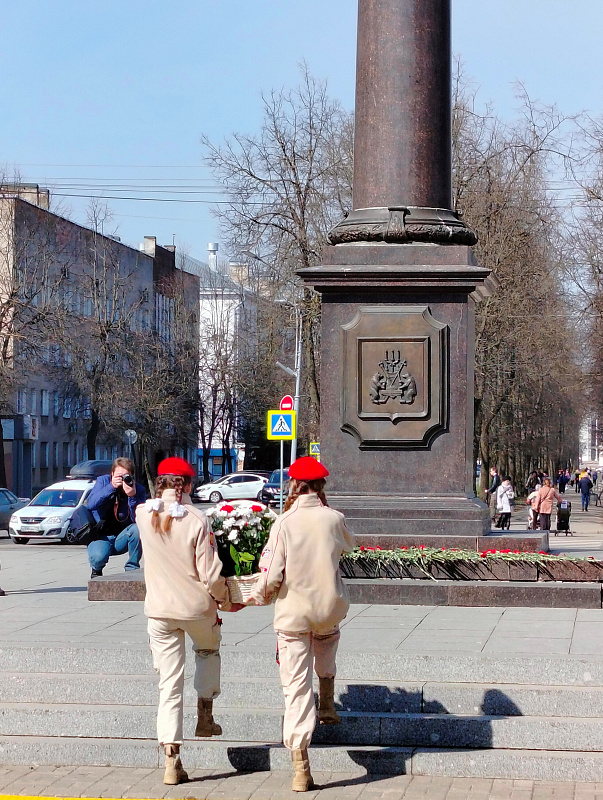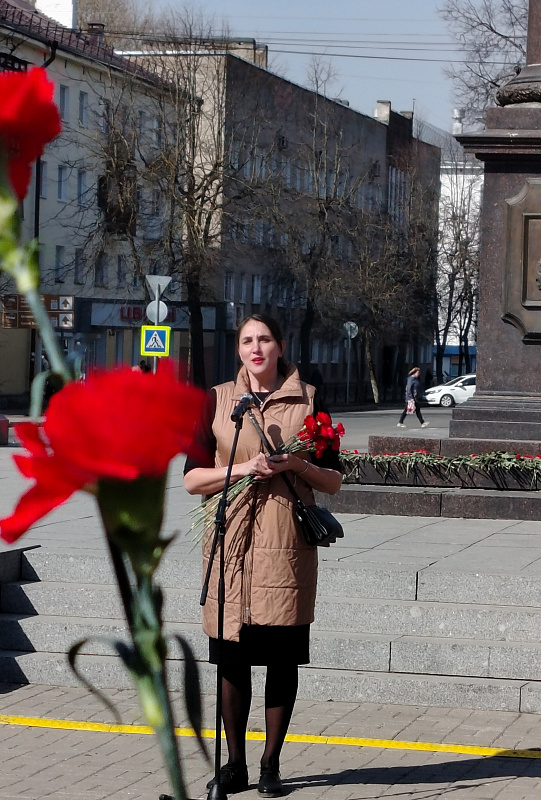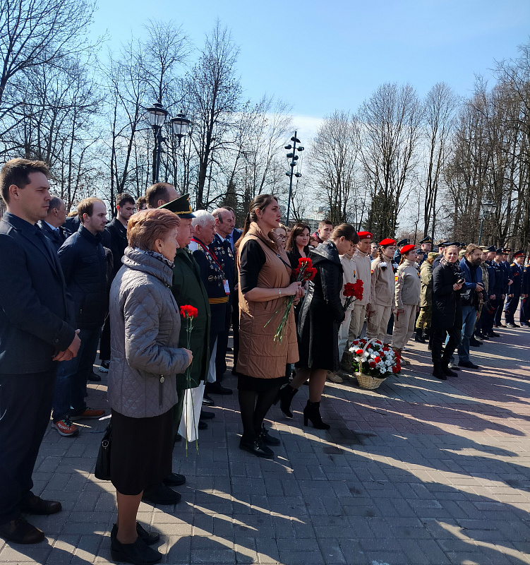 Все присутствующие почтили память о Героях минутой молчания. Затем состоялось возложение цветов к стеле «Город воинской славы».