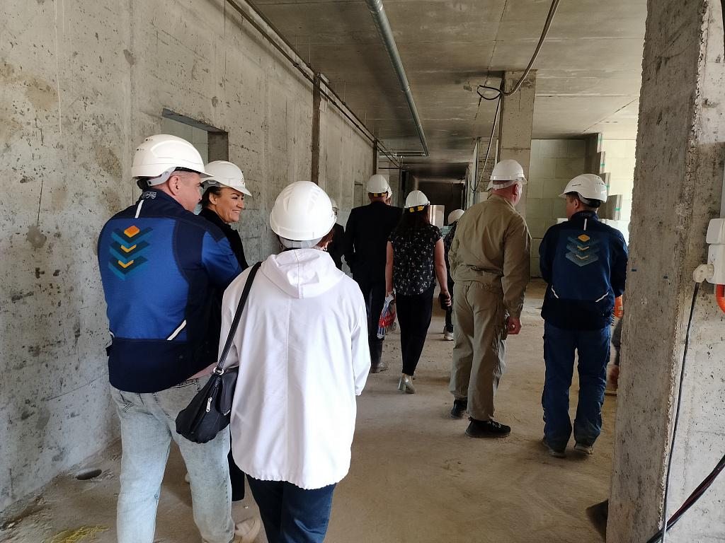 Члены общественного совета областного совета ветеранов 12 мая 2023 года в очередной раз побывали на строительной площадке нового здания "Дома - интерната для престарелых и инвалидов". Руководитель проекта И.А.Силаев доложил о ходе строительства, готовность которого к настоящему времени составляет около 35%. Все работы ведутся в рамках графика. Коробки жилого и административного корпуса завершены, заканчивается внутреннее строительство перегородок для комнат и кабинетов. В течение летнего сезона строители планируют завершить внутреннюю отделку. Как считают сами строители, впереди самая трудоемкая работа - прокладка инженерных коммуникаций внутри здания, устройство кровли и фасада.