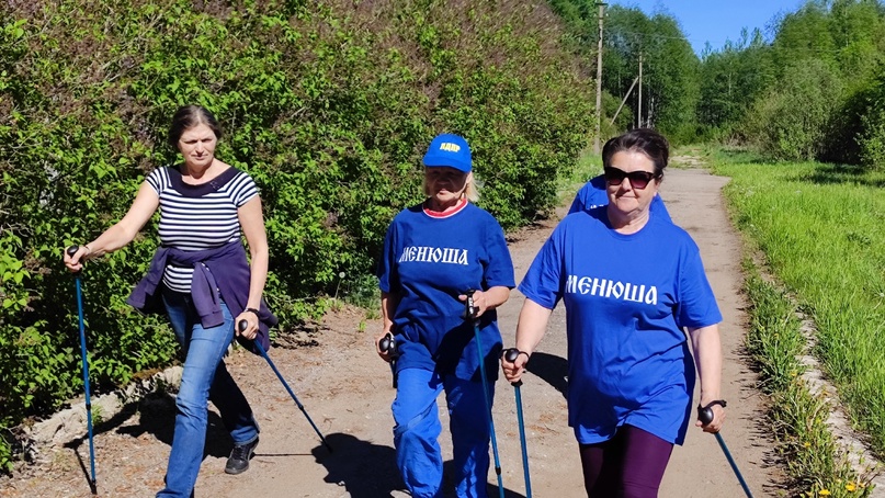 Ежедневно же, но только в 19 часов, выходят на тренировку члены спортивного клуба «Ух-ты», созданного при Доме культуры деревни Менюша Шимского района. Трое из участниц клуба – Александра Ивановна Корчагина, Галина Николаевна Колмакова и Мария Владимировна Гусева – принимали участие в зональном соревновании в д. Выбити. Команда Шимского района заняла в них второе место. 21 мая в Менюшах принимали гостей – членов сборной команды Шимского района по северной ходьбе из с. Подгощи. Виталий Анатольевич Орлов, учитель физкультуры, и Светлана Викторовна Уварова, учитель физики Подгощинской школы – заняли первые места в личном зачете на зональных соревнованиях и приехали поделиться опытом. Проведенная Виталием Анатольевичем разминка и совместно пройденная дистанция в 4 км дали заряд бодрости, помогли лучше узнать друг друга, дали хороший настрой на победу.