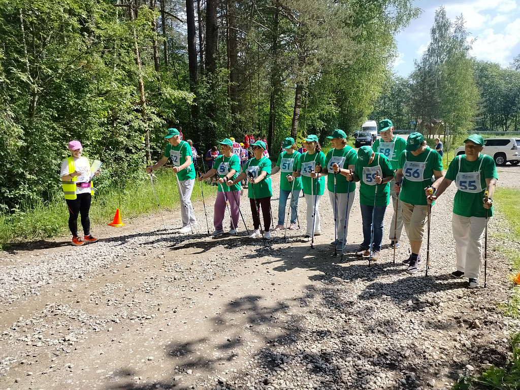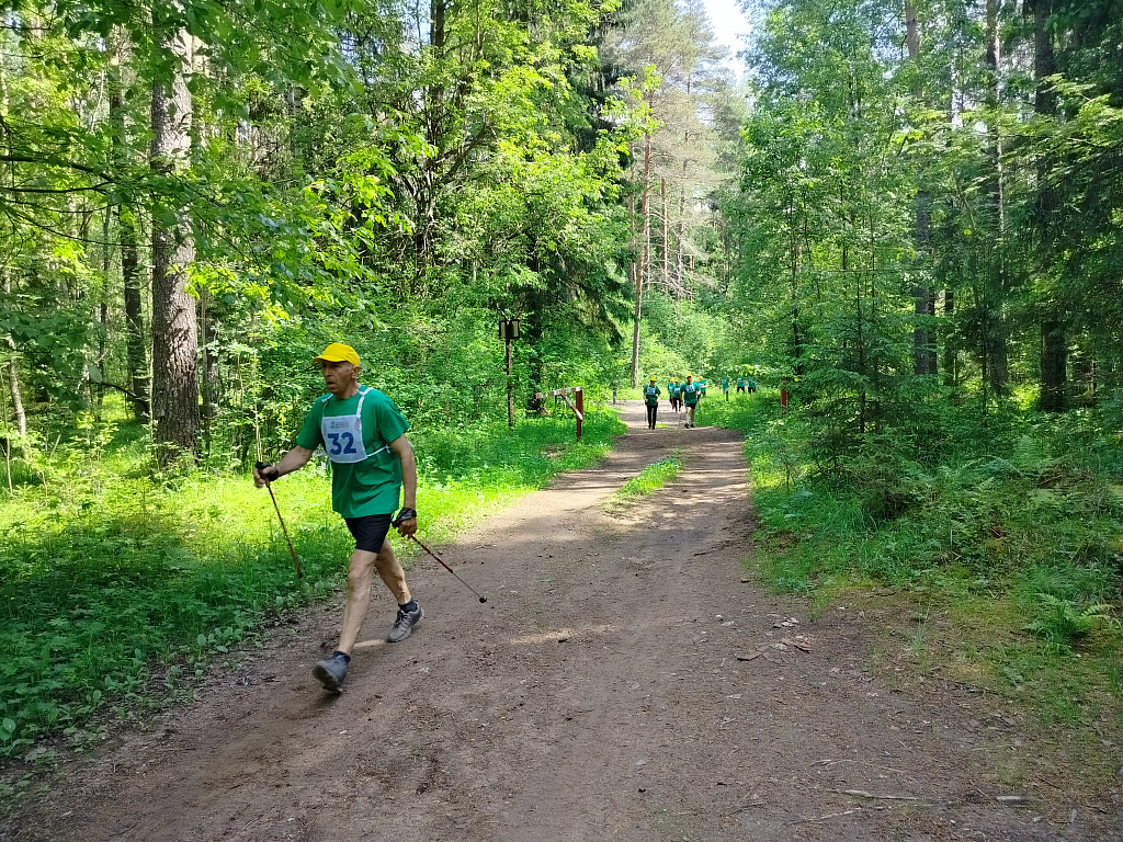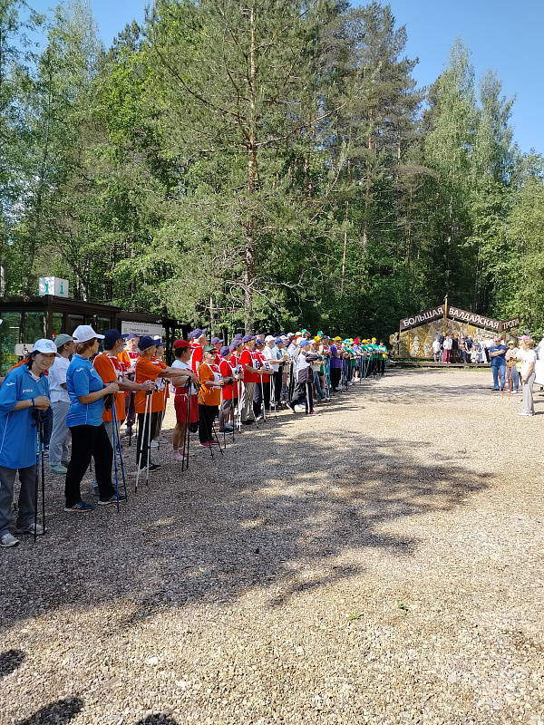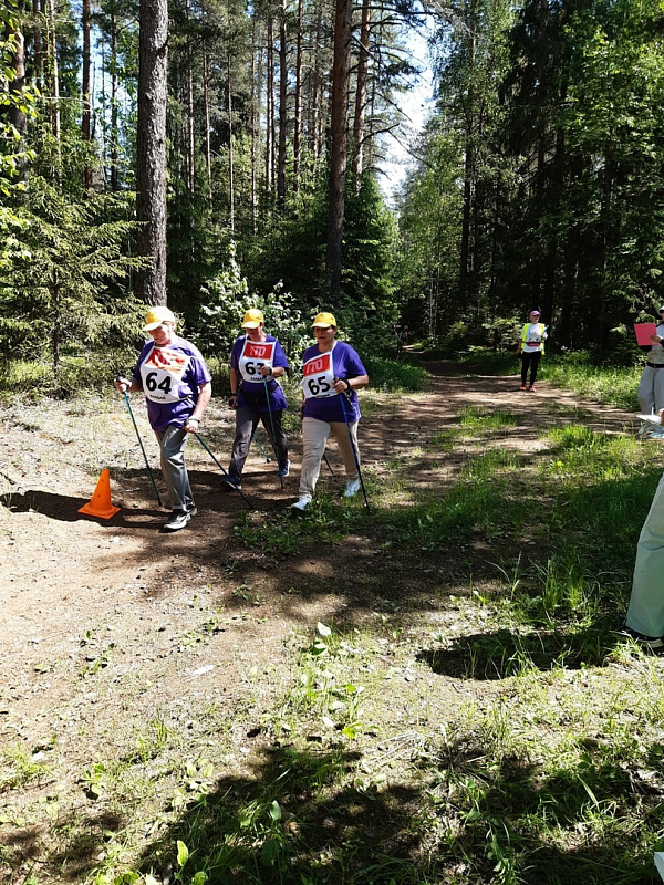 После приветственных слов председателя областного совета ветеранов Нины Ивановны Пилявской и председателя Валдайской районной ветеранской организации Леонида Федоровича Андреева и короткой веселой разминки, проведенной главным судьей соревнований Татьяной Александровной Паниной, команды стали выходить на старт согласно проведенной жеребьевки каждые 3 минуты. Большинство команд подбадривали себя коротенькими речёвками : « Наши – дружба и успех! Победим сегодня всех!», «Пусть победы не добьемся, с удовольствием пройдемся!». Кстати, прежде всего – к получению радости от прогулки по валдайскому лесу, к осторожности и вниманию к своему здоровью, а не к достижению рекордов призывали и организаторы этой оздоровительно-спортивной встречи. Всегда готова была прийти на помощь волонтер – медсестра Вера Борисовна Павлик (ветеран боевых действий в Афганистане, между прочим). Ведь среди участников были люди весьма почтенного возраста: Анне Николаевне Ефимовой из холмской команды – 82 года! Хотя, конечно, для соблюдения правил судейская команда не только фиксировала данные на старте и финише, но была распределена по всему 2, 5 –километровому маршруту, а сопровождающие группы председатели районных ветеранских организаций и завершившие свою дистанцию участники соревнований с жаром приветствовали финиширующих, подбадривали отстающих. Азарта хватало. И все с волнением ждали результатов финала.