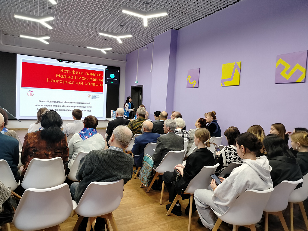 13 февраля в новгородском Доме Молодежи Новгородский областной совет ветеранов провел презентацию своего проекта «Эстафета памяти. Малые Пискарёвки Новгородской области», поддержанного Фондом президентских грантов.