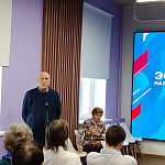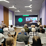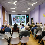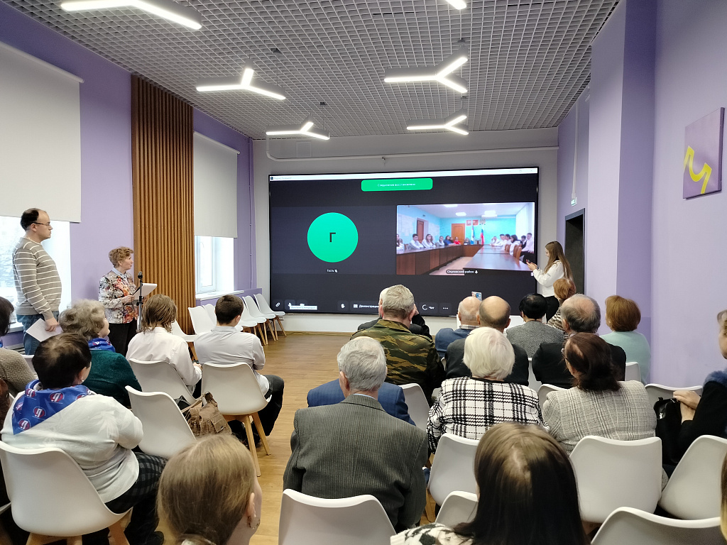 Презентация проекта транслировалась одновременно на две аудитории. В актовом зале Администрации Окуловского муниципального района под руководством первого заместителя главы района М.О.Петровой собрались ветераны и старшеклассники поселков Окуловка и Боровёнка – и приняли участие в мероприятии в онлайн-режиме.