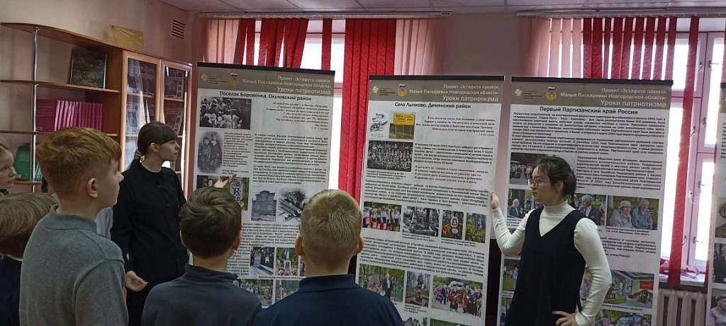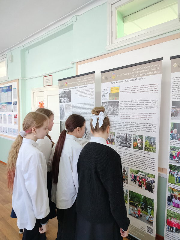 Сразу же после презентации выставки «Уроки патриотизма», созданной в рамках проекта «Эстафета памяти. Малые Пискарёвки Новгородской области», она была выставлена в Новгородском агротехникуме, где с ней смогли ознакомиться около 500 учащихся. В течение двух недель, с 23 февраля по 13 марта, передвижная выставка экспонировалась в МАОУ "Гимназия N2" Великого Новгорода. На уроках истории, в рамках проведения фестиваля военного искусства, гимназисты узнавали о трагических событиях июля 1941 года, признанных геноцидом. Тогда в районе станции Боровёнка Окуловского района и деревни Лычково Демянского района (ныне Новгородской области) фашисты разбомбили эшелоны с ленинградскими детьми. Многие из них покоятся в сельских братских захоронениях. На протяжении многих лет за скромными могилами ухаживают местные жители, которые смогли сохранить не только могилы, но и воспоминания о той трагедии. С большим вниманием гимназисты отнеслись к этим материалам. Пристально рассматривая фотографии, свидетельства той самой страшной войны, ребята высказывали желание посетить эти мемориалы, отдать дань памяти безвинным жертвам.