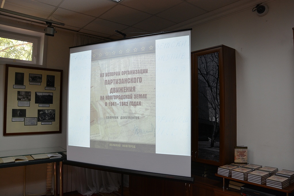 В зале ГАНИНО прошла также презентация нового издания архива – сборника документов «Из истории организации партизанского движения на новгородской земле в 1941-1942 годах». В сборник вошло 59 архивных документов и 25 фотодокументов из 17 фондов Санкт-Петербургского государственного казенного учреждения «Центральный государственный архив историко-политических документов Санкт-Петербурга» и ГОКУ ГАНИНО, личных архивов.