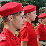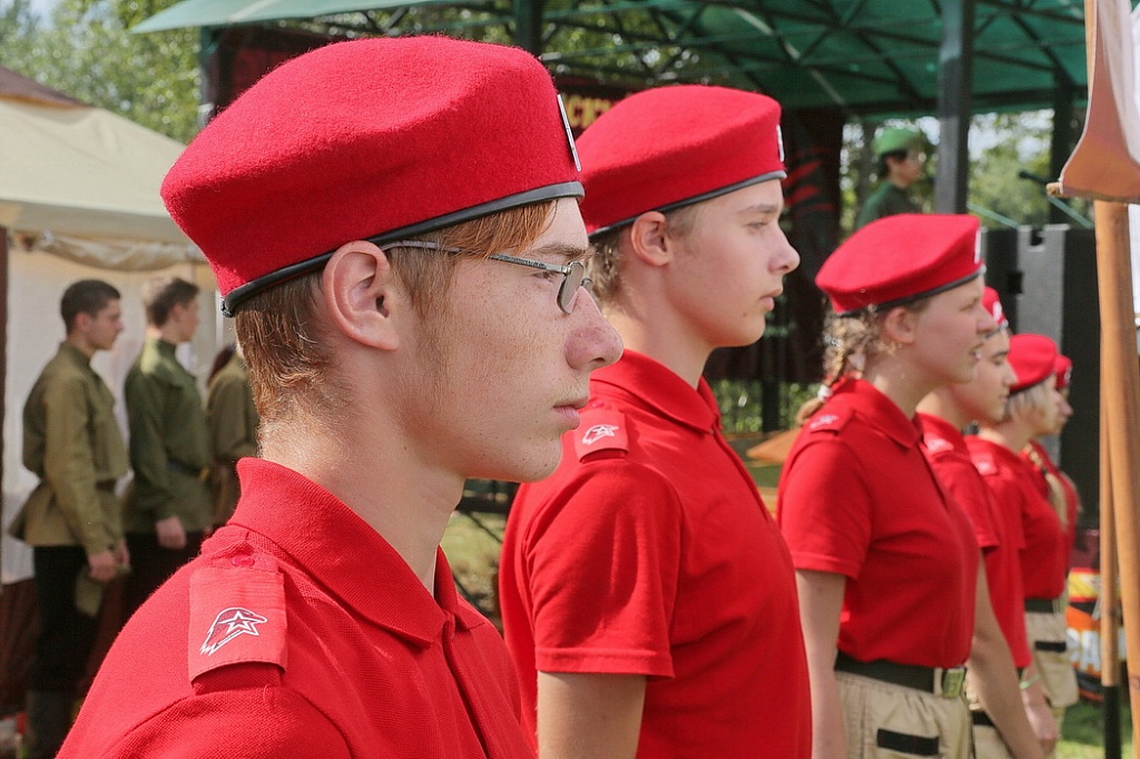 До того, как прозвучали торжественные речи и выступили творческие коллективы, юнармейцы вынесли на Партизанскую поляну государственный флаг, легендарное Знамя Победы и штандарты 13 партизанских бригад.